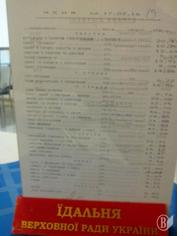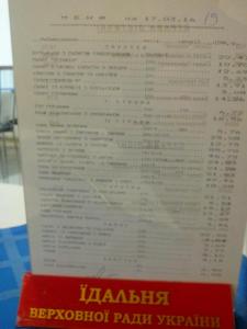 Второй миф – дешевая столовая. «По моим наблюдениями, цены в столовой комитетов ниже, чем в депутатской, - поделилась Анна Романова. - В последнее время цены еще более выросли и нормально поесть меньше, чем за 70-100 гривен, уже невозможно. Колбасы по 3 гривны нет. Поэтому в комитетской столовой тоже питаются».