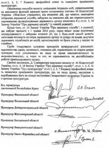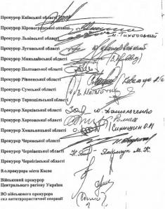 Письмо также подписали прокуроры 21 области Украины, и.о. прокурора АР Крым, и.о прокурора Киева, военный прокурор Центрального региона и и.о. военного прокурора сил АТО.
