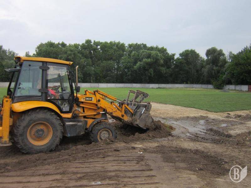 На стадионе им. Гагарина в Чернигове проводятся работы по замене футбольных полей.