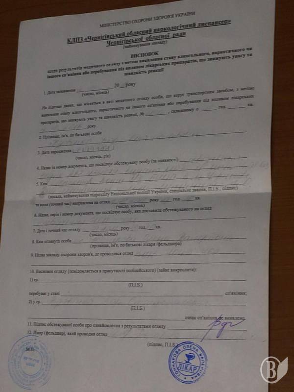 Ігор Вдовенко, голова Чернігівської обласної ради, сьогодні показав довідку, згідно з якою він був тверезий під час вчорашнього ДТП.