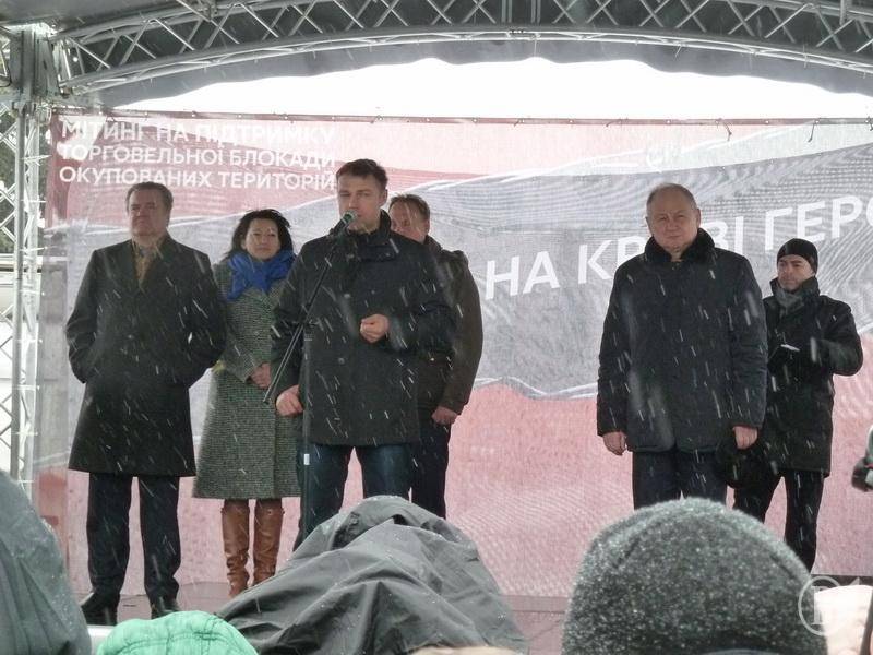 Разом з тим учасники акції наполягали на якнайшвидшому ухваленні законопроекту про статус окупованих територій, який покладе край економічним взаєминам Києва з окупантами.