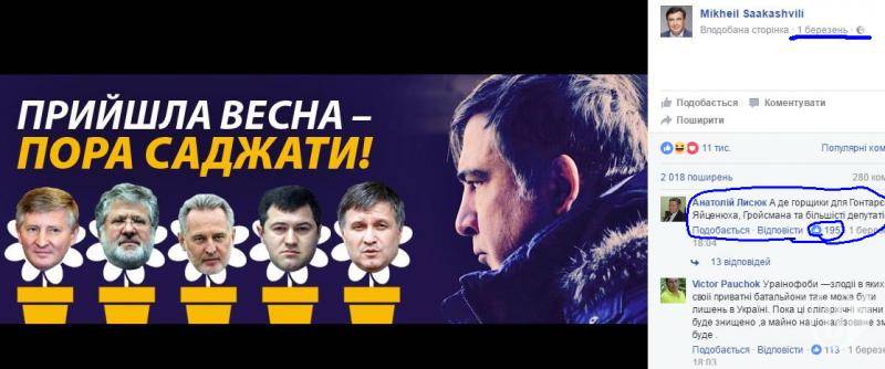 У перший день весни Михеіл Саакашвілі оновив зображення обкладинки на своїй сторінці Facebook. На ньому були горщики з «квітами».