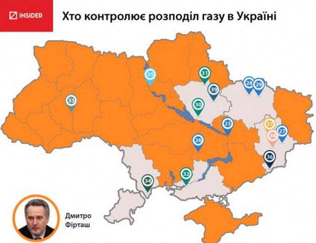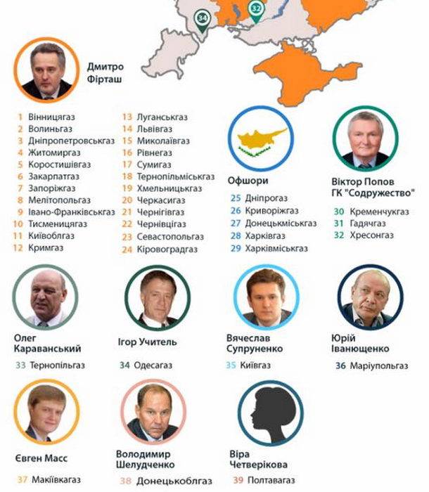 Фірташ вже давно є монополістом на газовому ринку України. В його «Регіональну газову компанію» входять 28 компаній з 40, які є на ринку.