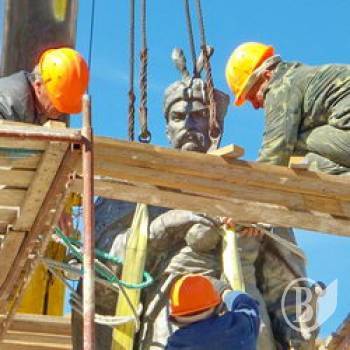 Мить розвороту скульптури Богдана Хмельницького