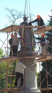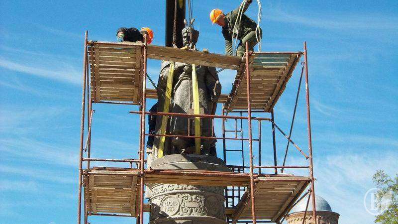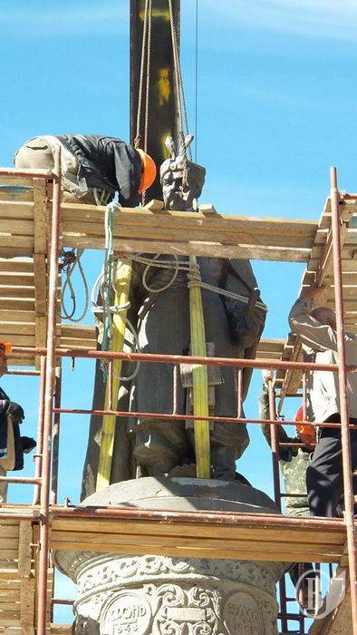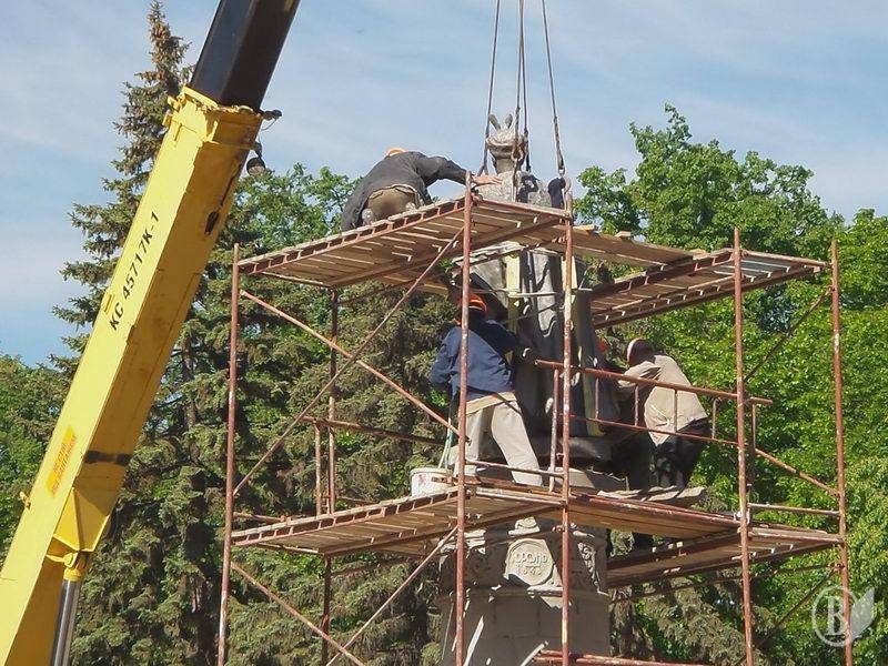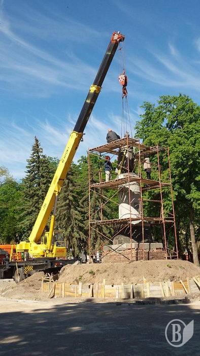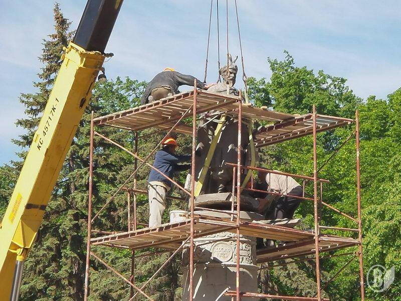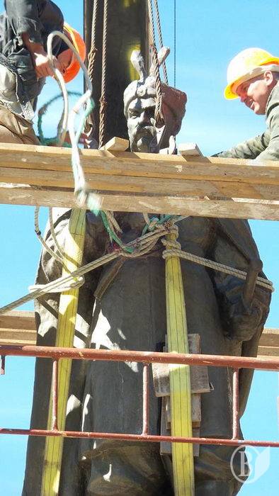 В сквері триває близько півроку реконструкція, зокрема було виділено майже 700 тисяч грн на реконструкцію постаменту Хмельницького, в рамках якої і виконано поворот.