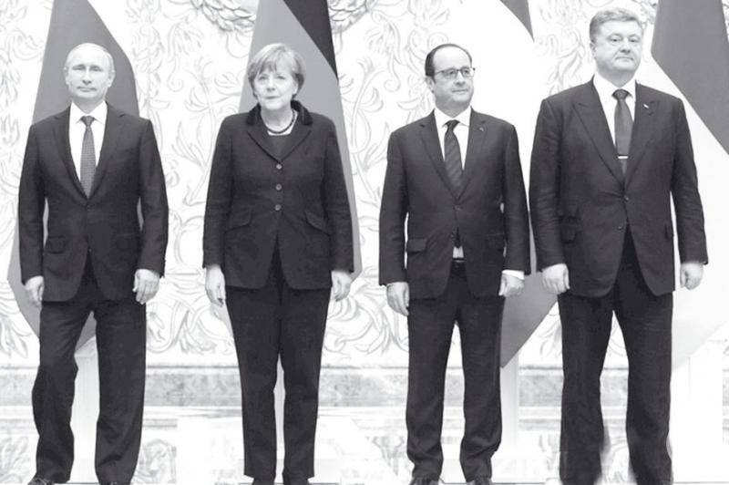 А тепер – Мінські угоди вересня 2014 року, підтверджені повторно в лютому 2015 року вже на найвищому рівні. Суб’єкти – Німеччина, Франція, Росія, Україна. Отже, агресор – Росія, жертва агресії – Україна і посередники – відроджена через 7 десятиліть по війні вже не агресор, а миротворець могутня Німеччина і Франція. Чотири найбільші країни Європи. Те, що назвали Нормандською четвіркою або нормандським форматом переговорів.