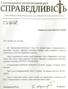 Рух Наливайченка «Справедливість» звертається до ГПУ із заявою про злочин з боку «Укрзалізниці»
