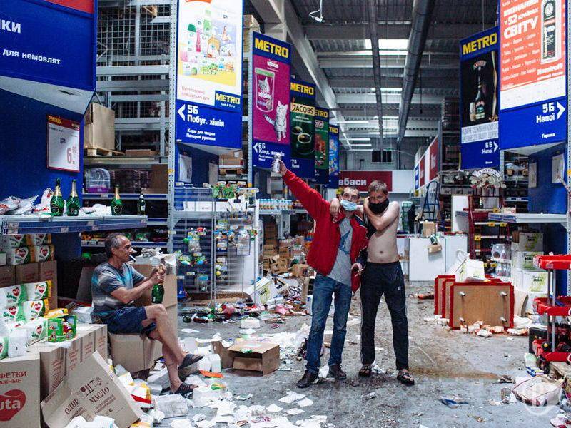 І якщо для місцевих розграбувати товари, насамперед продукти, можна розуміти як необхідність себе забезпечити в умовах невизначеності й приходу «русского міра», то як пояснити останні фото?