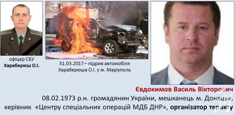 «Саме Євдокімов-«Ленін» за завданням російських спецслужб організував підрив 31 березня 2017 року автомобіля контррозвідника СБУ полковника Олександра Хараберюша у Маріуполі», ‒ нагадав Василь Грицак.
