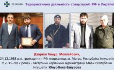 Окрім цього, СБУ встановила місце перебування та затримала на конспіративній квартирі ще одного учасника диверсійної групи – російського громадянина Дзортова Тимура Мовлайовича. Він служив в особистій охороні Глави Республіки Інгушетія, а у 2015-2017 роках займав посаду заступника керівника Адміністрацій Глави Інгушетії.