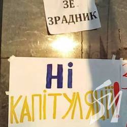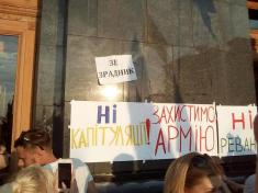 Кілька тисяч людей, серед яких ветерани, волонтери, блогери в т.ч. й з Чернігова Юнис Аскеров та інші вийшли вчора, 10 червня до Адміністрації преЗЕдента з плакатами "Ні капітуляції!".