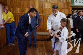 Під час візиту Зеленський також зустрівся з юною спортсменкою Аріанною Мурженко, яка потрапила до Книги рекордів України як наймолодша українка, яка стала чемпіонкою світу з традиційного карате у програмі ката.