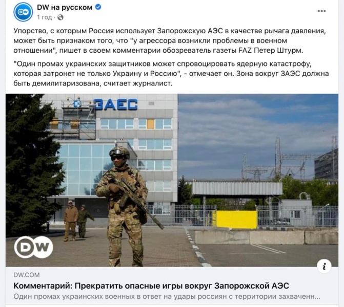 - "один промах українських захисників може спровокувати ядерну катастрофу на Запорізькій АЕС";