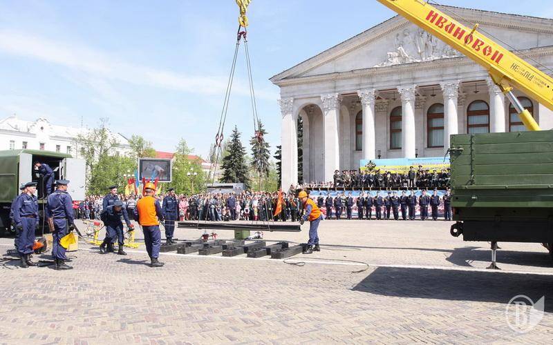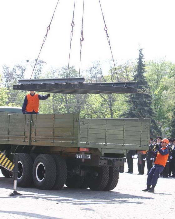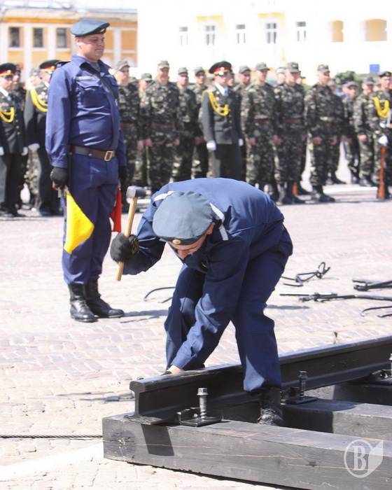 Військовослужбовці восьмого Чернігівського навчального центру Держспецтрансслужби встановили на Красній площі у Чернігові фрагмент залізничного полотна.