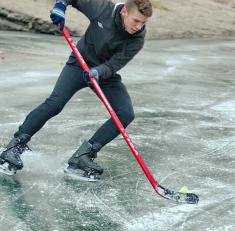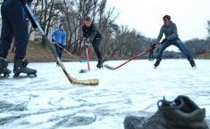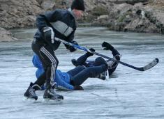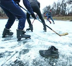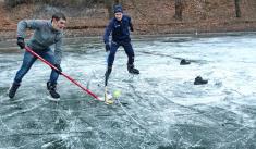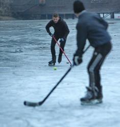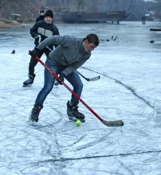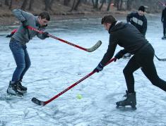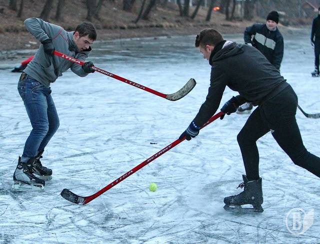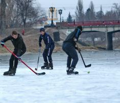 Пролітав мимо Красного мосту, аж гульк. Хлопці вже в хокей грають. Та не де-небудь, а на самісінькій річці. Ганяють собі, аж дух захоплює.