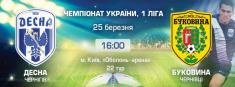 Команда чернігівського футбольного клубу «Десна» зустрінеться із чернівецькою «Буковиною» у Києві на стадіоні «Оболонь-арена». Початок матчу – о 16 годині.