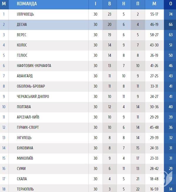 Чернігівський ФК «Десна» – на другому місці турнірної таблиці