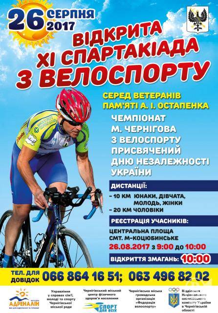 Чемпіонат Чернігова та відкрита XI спартакіада з велоспорту відбудеться 26 серпня