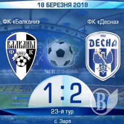 Рахунок в матчі «Балкани» - «Десна» – 1:2.