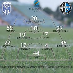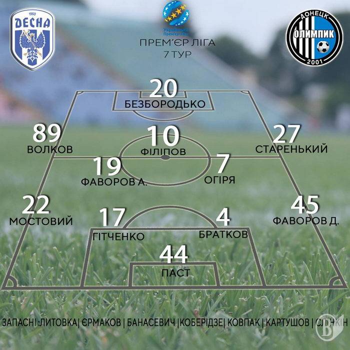 «Десна»: Паст, Фаворов Д., Братков, Гітченко, Мостовий, Огіря, Фаворов А., Старенький (Банасевич, 70), Волков (Картушов, 12), Безбородько (Ковпак, 65), Філіппов.