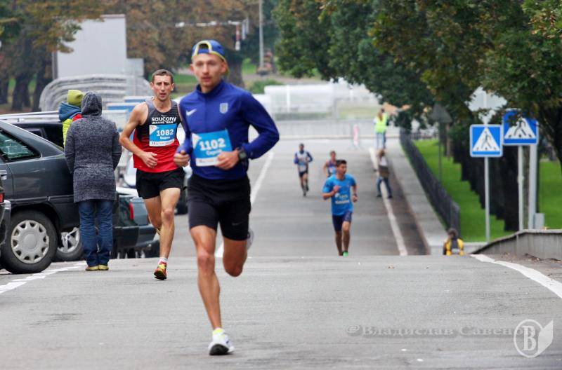 Він уже упевнено зачепився за лідера, чернігівця Сергія Шевченка №1102 , який стартував у першому ряду бігунів із самої площі.
