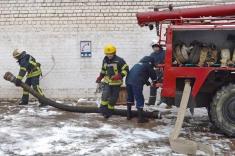 Під час практичної частини відпрацьовані дії з ліквідації пожежі на горищі однієї з будівель. Черговий персонал викликав пожежно-рятувальні підрозділи міста та добровільну пожежну команду установи, здійснив відключення електропостачання та розпочав евакуацію людей з одночасним гасінням умовної пожежі за допомогою первинних засобів пожежогасіння.