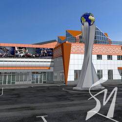 Планувалось створення комплексу робити в кілька черг. Тут мав бути спортивний зал на три тисячі глядацьких місць. Це багатофункціональна зала, де частина місць може трансформуватися. Важливо, що там будуть проводитись не лише спортивні заходи, а й наприклад, концерти. Будівля з розташування спортивно-концертної зали стане обличчям комплексу.