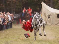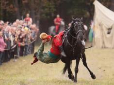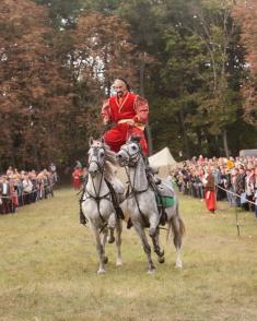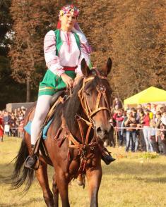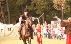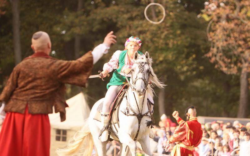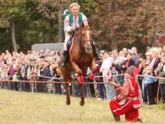 В рамках праздника «Седневская осень» в субботу 26 сентября современные «казаки-каскадеры» продемонстрировали свою ловкость в сбивании тыквы на скаку и других упражнениях.