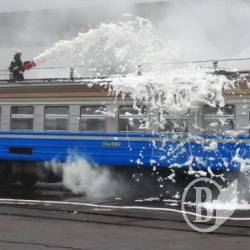 На днях в Фастове пожарные подразделы военизированной охраны Юго-Западной железной дороги вместе со спасателями МЧС боролись с огнем, который охватил колёсный цех моторвагонного депо.