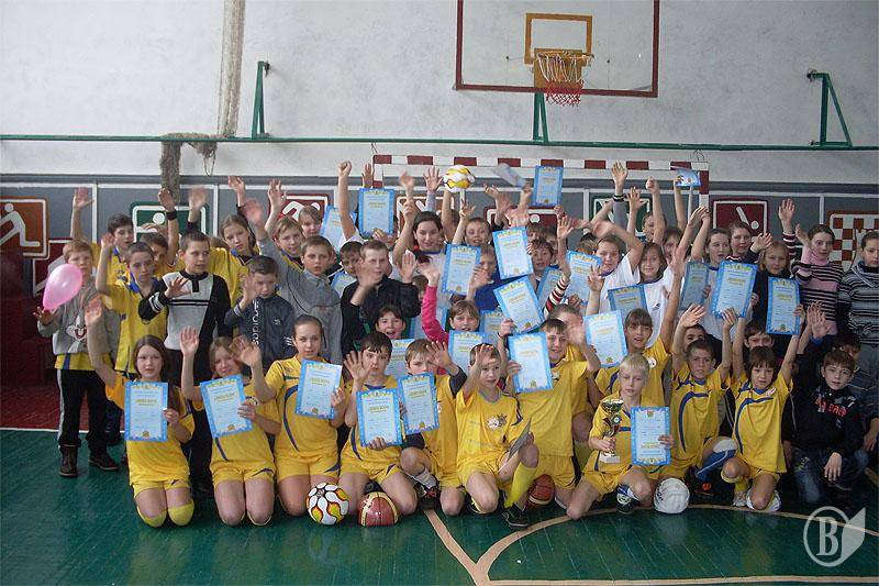 Крім традиційних кубків та дипломів, всі команди учасниці отримали в подарунок спортивний інвентар від обласного осередку НОК України. (на фото: команда –переможець та команди-призери змагань).