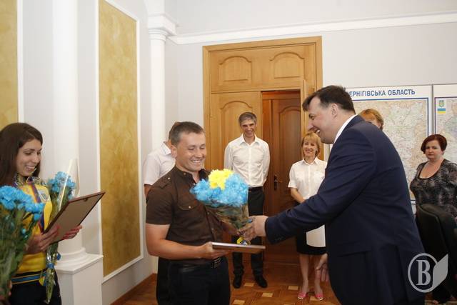 Зі спортсменками зустрівся голова обласної державної адміністрації Валерій Куліч. Також на зустрічі був присутній Олег Кравець – тренер-викладач з боксу Ічнянської районної ДЮСШ ФСТ «Колос», особистий тренер Кароліни Махно та Катерини Рогової.