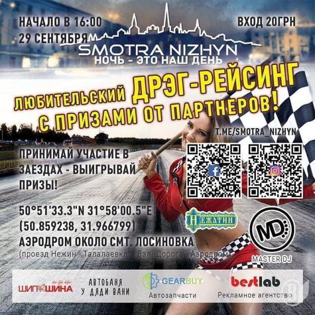 В суботу, 29 вересня, ніжинців запрошують на Дрег-рейсинг, проведення якого вже стало гарною традицією.