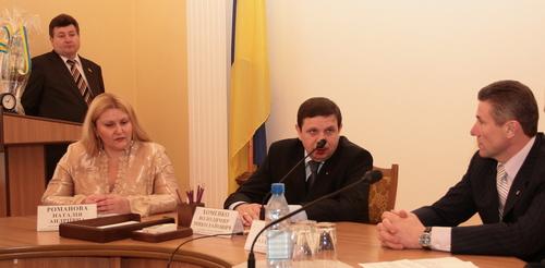 У Чернігівській обласній державній адміністрації відбулася зустріч голови Чернігівської обласної ради Наталії Романової та голови Чернігівської облдержадміністрації Володимира Хоменка з Президентом Національного олімпійського комітету Сергієм Бубкою.