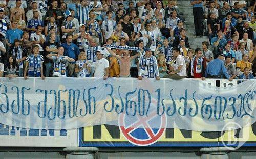 14.08.2008 Фанов \"Динамо\" с грузинским флагом не пустили в Россию