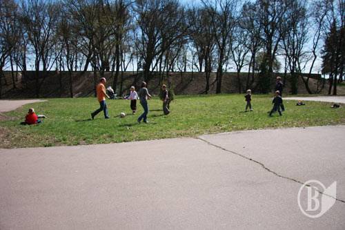 Два дні підряд на древньому чернігівському Валу – Дитинці тривали футбольні поєдинки, які ви бачите. Грали між собою дві, як з’ясувалося, французькі команди „ПСЖ” і „Марсель”, які нещодавно були „вибиті” українськими клубами з чвертьфіналу Кубка УЄФА.