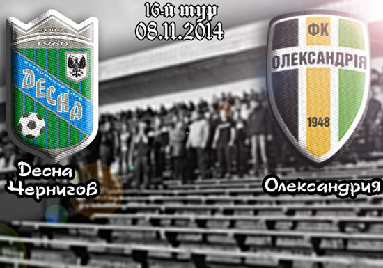 Гра чернігівської «Десни» з лідером чемпіонату «Олександрією» у 16 турі першої ліги відбудеться 8 листопада у Чернігові о 14-00 на стадіоні ім. Ю. Гагаріна.