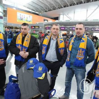Они получили приглашение от ФФУ посетить игру национальной команды. В аэропорту "Борисполь" наши герои уже были с болельщицкой экипировкой - розами и кепками сборной Украины.