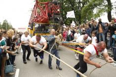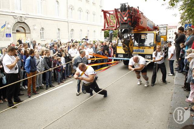 Такого не побачиш більше ніде в світі: троє чоловіків – чернігівець, маріуполець та черкащанин голіруч, за допомогою лише канату по асфальту протягли двадцять два метри кран вагою понад 45 тонн. Це справді дивовижне видовище фіксували камери телеканалів, а також на власні очі бачили понад тисячу городян. Рекорд також офіційно внесений до Книги рекордів України.