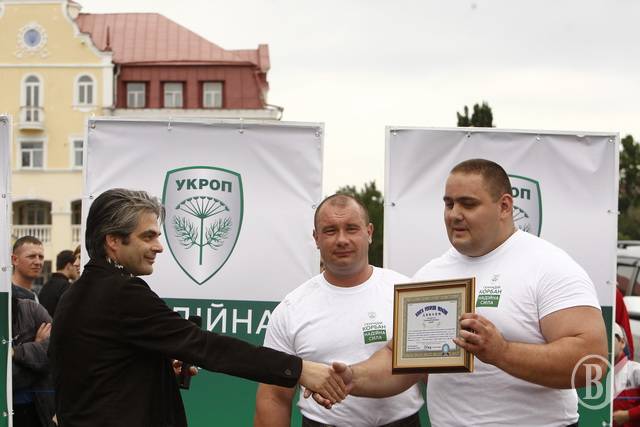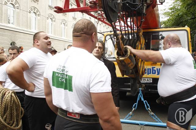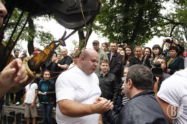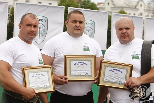 Однак навіть такої переконливої демонстрації сили стронгменам видалося мало. Представник національного проекту «Книга рекордів України» Ігор Підчібій пояснює журналістам: