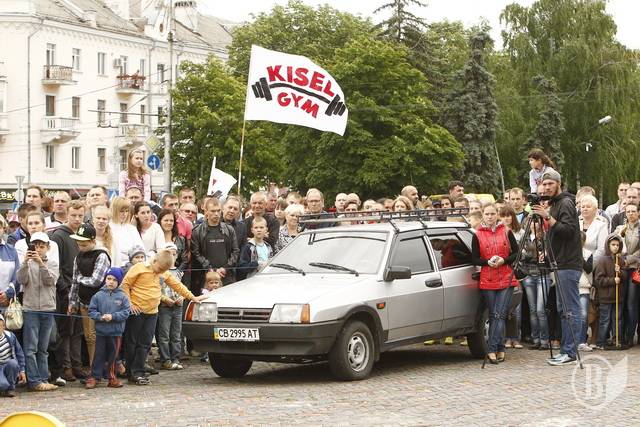 Завдяки благодійному об‘єднанню «Укроп» у Чернігові в самісінькому центрі міста – на Красній площі – троє стронгменів готувались поставити світовий рекорд, про який мріяли кілька років.